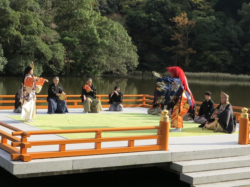 令和7年11月09日 11月8日(土)能楽の奉納がありました 11月8日(土)外宮まがたま池の奉納舞台において、観世喜正氏をはじめとする、のうのう事務所の皆様による能楽「第六天」の奉納がありました。 一覧にもどる 前へ