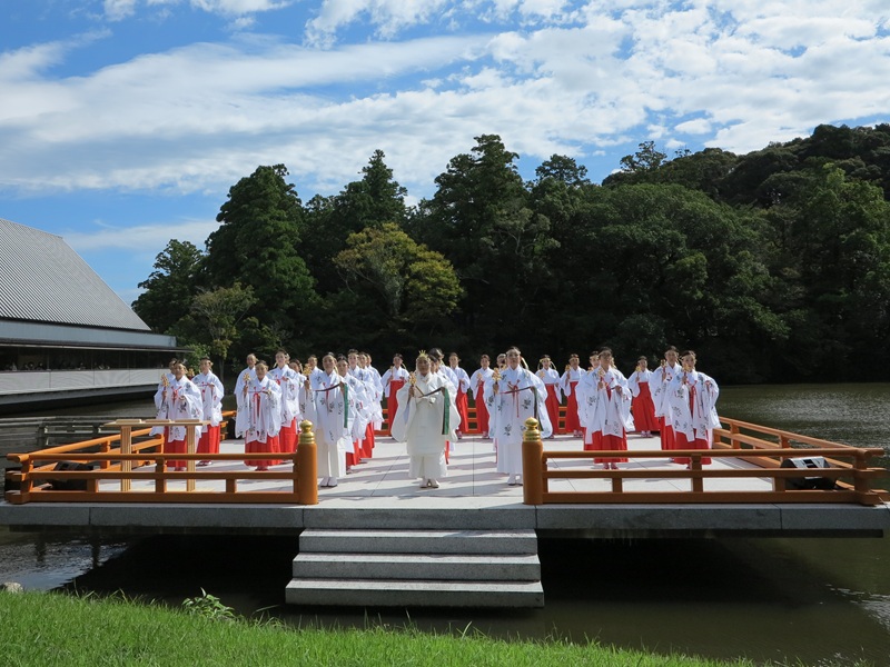 令和7年10月21日 10月20日(月)神楽の奉納がありました 10月20日(月)外宮まがたま池の奉納舞台において、支倉美雪氏をはじめとする一般社団法人あけのうた雅楽振興会の皆様による神楽の奉納がありました。 一覧にもどる 前へ