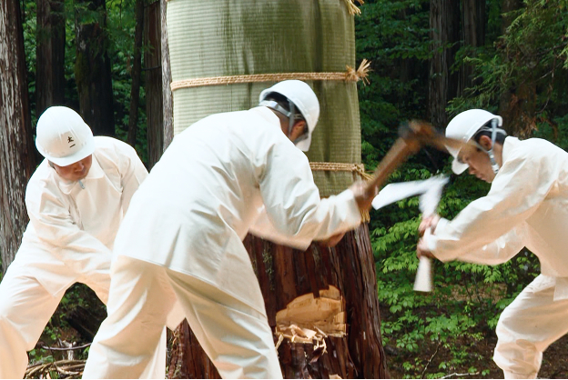 令和6年夏から営林部職員の指導の下、当館職員が山へ入って取材を行い、構想から完成までに1年半の時間を要しました。実際の営林作業とそこに従事する職員と接し、日々木と向き合うひたむきな姿を目の当たりにしましたが、普段では知り得ない命がけの作業の連続でした。神様の森を育む営みは、神宮と式年遷宮の未来を託された200年単位の務めであって、宮域林には別の時間軸があることを感じました。